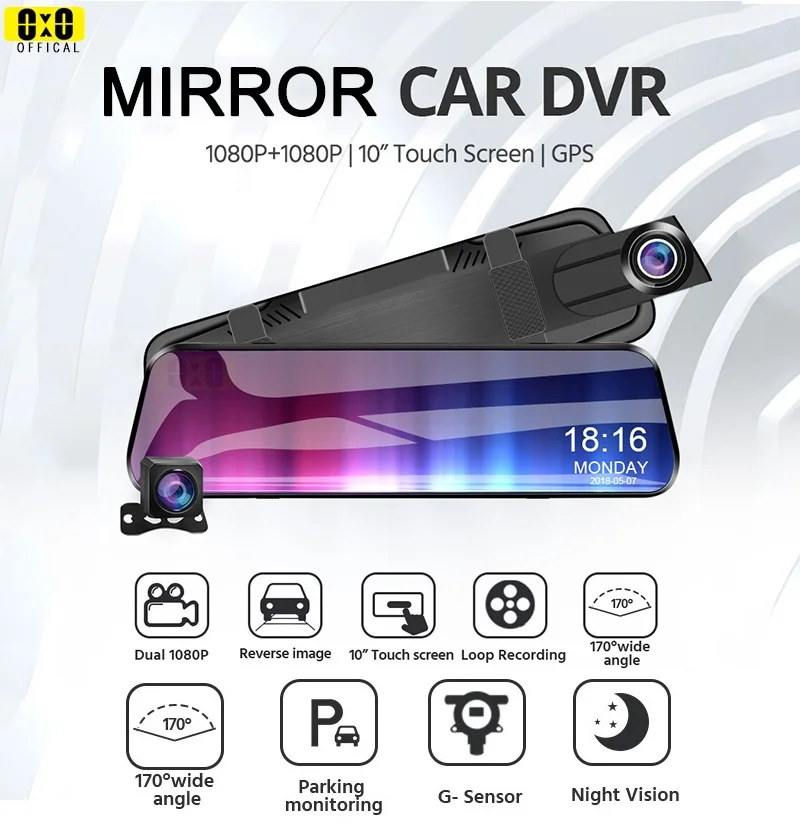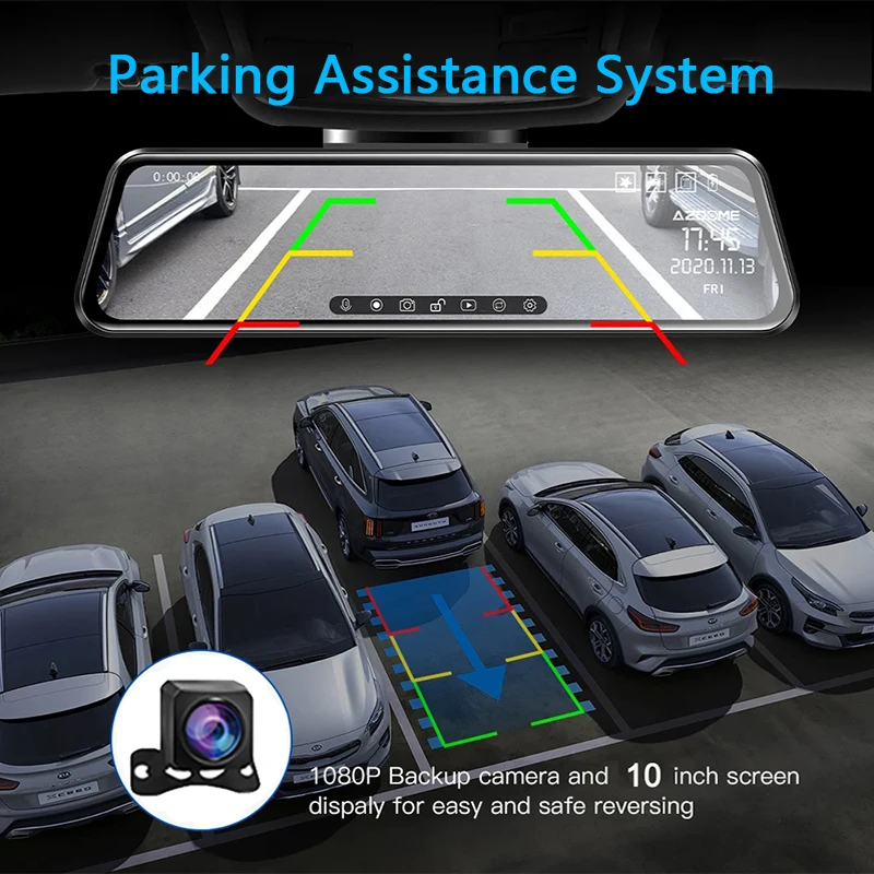 Revl1ne 10'' Rearview Mirror Dash Cam Front & Rear 1080P Dual Recording, Backup Camera with 24H Parking Monitor